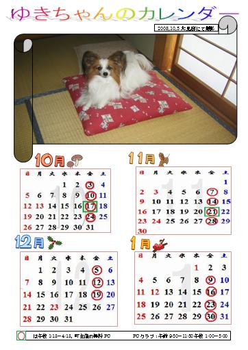 | ゆきちゃんという名の愛犬のカレンダーを作りました。カメラ目線の愛犬・「ゆきちゃん」は、りこうそうですね。 |