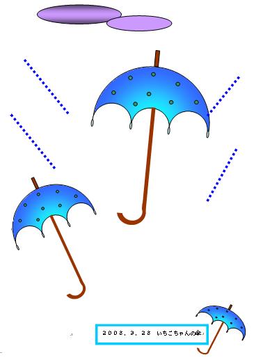 | 文書作りをする人や、ペイントで絵を描く人、オートシェイプで絵を描く人などそれぞれ、いつもどおりに各自が好きなことに取り組んでいました。最近は、文書作りに力を入れるようにしていますが、まだまだ図形関係の人気が高いようです。 ……この日の感動の中心は、プロのような腕を発揮するにゃんこさんのペイントの絵でした。まだ、未完成とのことですが「うわ〜すご〜い!」という歓声があがりました。色合いがうまくいかないと言って、描き直したものをメールで送ってきました。それでも、まだ、直したいと言ってましたが、とりあえず、いまの状況をご紹介します。 「カラフルな傘」も依然として人気で、2作目の傘に挑戦している人もいました。一筆箋も静かなブームで、今までの作品を駆使して本人こだわりのオリジナル一筆箋を仕上げて、満足!といった人もいましたよ。この日も賑やかでした。 文書作りは「試食会の案内」や「スポーツ施設優待」「送付状」などです。 ブログに興味を持っている人もいたので、「花と私」というテーマの「ブログ体験資料」を渡しました。ヤフーで「ブログ 花と私」と検索すると出てきますので、ご利用ください。 |
