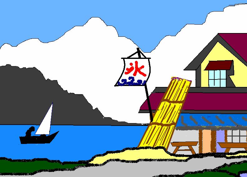 | にゃんこさんのペイントで描いた海の絵 | ||
