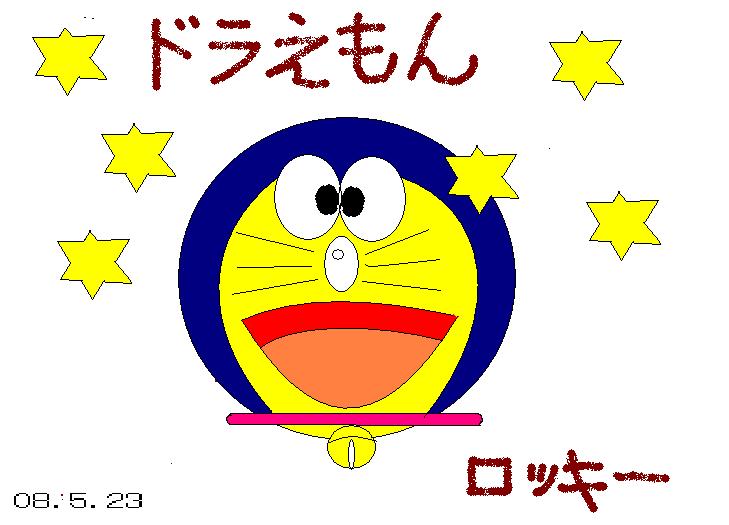 | ロッキーさん、念願のドラえもんの絵が描けてうれしそうでした。ペイントのすべてのツ−ルアイコンを使う練習としてのドラえもんなのです。鈴を描くことって大変だったと思いますが、クリヤーしてますよね。目玉を描くときは、透過させるアイコンを使うということや虫眼鏡アイコンを活用することなど、いろいろいい勉強になったことと思います。これだけ描けるのですから、ペイントはもう大丈夫ですね。 |