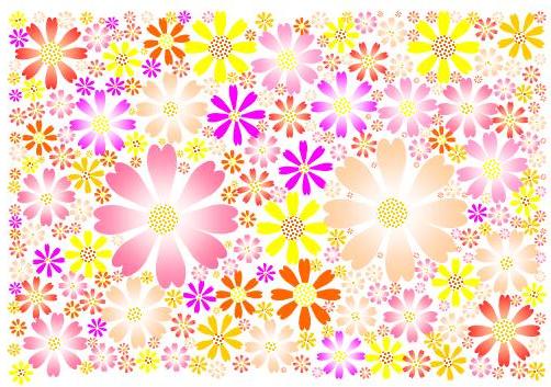 | ハートをいろいろいじっているうちに、コスモスやら、マーガレットなどを描いていて、コピー&ペーストを繰り返して、色違いにしたり大・小にしたりして楽しんだようです。ちょっとした包装紙にしたいと微笑んでいました。 |