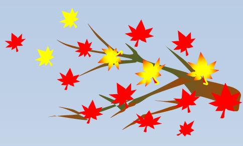 | 紅葉の葉をよ〜く見てください。ハートのとがった部分を外側にして7つ組み合わせて作ったそうです。ハートを少し細長くして使っているようですね。黄色のグラデーションの葉が豪華ですね。カラスも何となく楽しいですね。 |