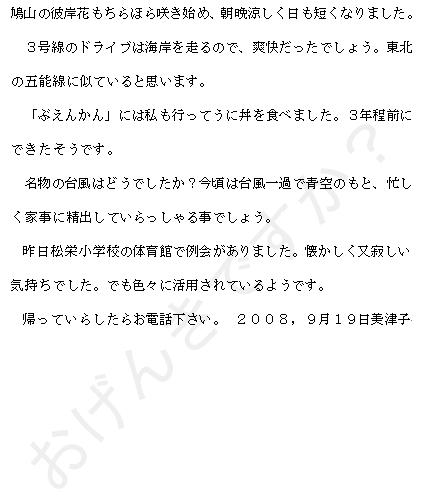 みっちゃんのお手紙のフォントは「MS 明朝」でした。これからは、いろいろなフォントを勉強して、フォントを楽しむというのもひとつの勉強ですね。