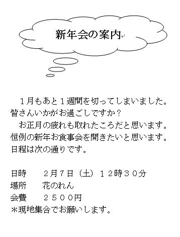 ☆みっちゃんは、「新年会の案内状」を完成させていました。次回は写真をスクリーンセーバーにする作業に挑戦ですね。