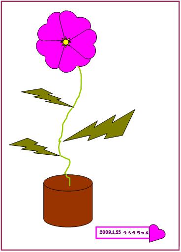 ☆うららちゃんは図形に挑戦。この日はこんなに素敵な花を描きました。図形の回転操作や「自由な線」で描く操作がうまく出来たのでうれしかったです。もう、図形も文書も両方できるようになったのでこれからの作品づくりが楽しみですね。この日は、スクリーンセーバーに雪の写真をセットしてとてもうれしそうでした。これからは、デジカメを持ってきて写真にもどんどん挑戦していくようです。ますます楽しみです。