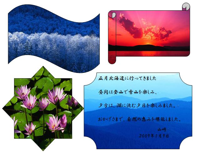☆やまちゃんは冬休みに旅行したので、その写真を貼り付けて手紙を書きたいと言ってました。 写真を持ってこなかったのでサンプルを使って練習していただきました。すてきな仕上がりですよね。次回は北海道旅行の写真で作るそうです。