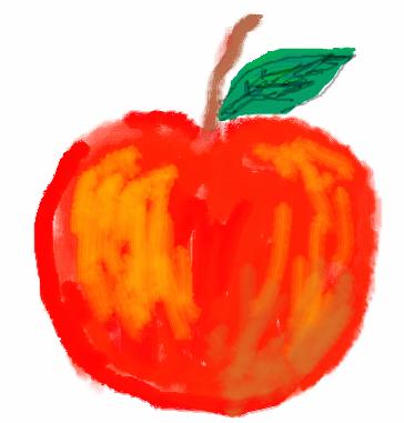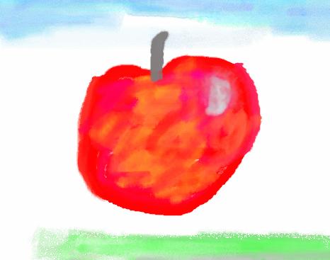 ☆まこさんは、ペイントを勉強したいと言って一通りペイントのツールの学習をしました。「霧吹き」ツールに興味を示しアヤメの絵に応用していました。そのあと、「ゆめいろえのぐ」というソフトでダイナミックなリンゴの絵を短時間に完成させてしまいました。初めてのソフトなのに果敢に挑戦…といった感じです。家で描いたというアヤメも素晴らしいですね。