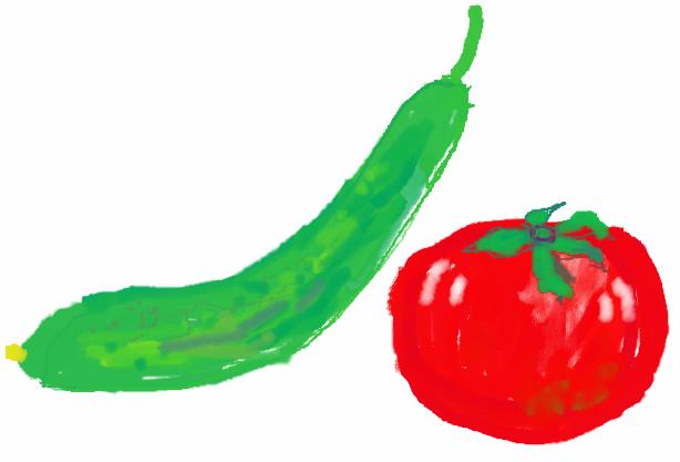 にゃんこさんのキューリとトマト |