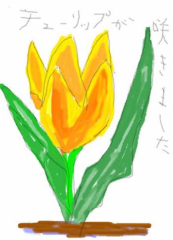 ☆いちごちゃんは、「絵手紙ペイント」や「水墨画ペイント」というフリーソフトに挑戦していました。「ゆめいろえのぐ」というフリーソフトも挑戦したばかりです。意欲的ですよね。新しいものに取り組むのはしんどいのですが、この日はさっそく「水墨画ぺいんと」を使って(水墨画でもカラフルな色があるので…)黄色いチューリップを描いていました。