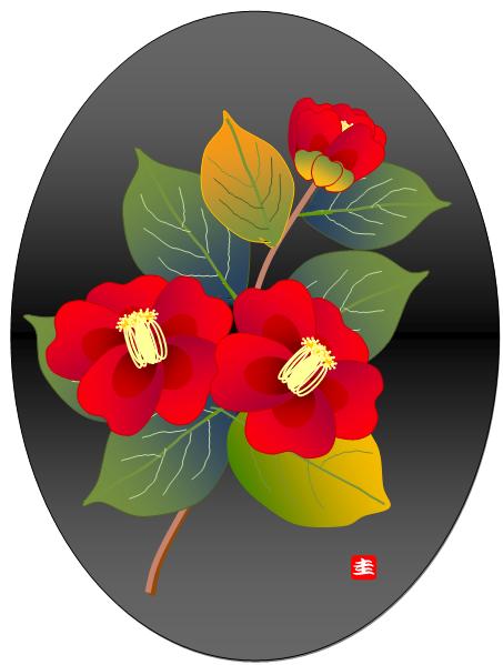 にゃんこさんの椿(初めて、絵手紙ペイントソフト使用) |