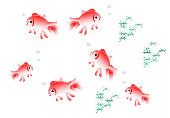 ☆みっちゃんはワードの図形を組み合わせて夏らしいイラストを作って暑中見舞いに使いたいということで、「朝顔」や「金魚」の絵を描きました。すてきなハガキができそうで楽しみですね。