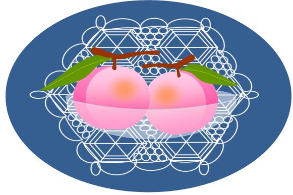 いちごちゃんのレースの敷物と桃 |
