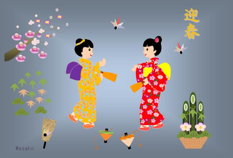 | 2009年12月11日のメールで届いた作品 まこさんの正月の光景 (使用ソフト:ワード) |
