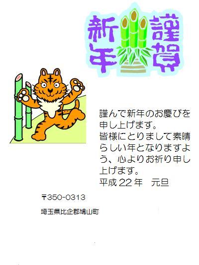 2010,1,1に届いた年賀状 (住所を消してあります) みっちゃんの年賀状 (使用ソフト:ワード) |