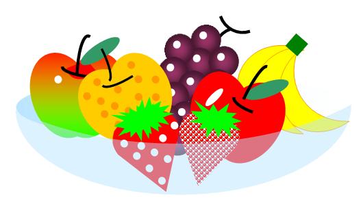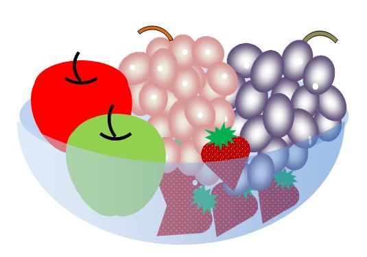 2010,4月の作品 ほそちゃんのフルーツ皿の絵(使用ソフト:ワード) りんごのグラデーションがいい感じ…! |