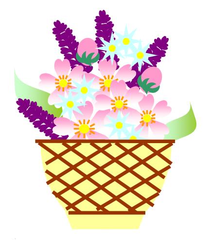| 2010,4月の作品 ほそちゃんの花籠(使用ソフト:ワード) ラベンダーの紫色がさわやかでステキ…! |