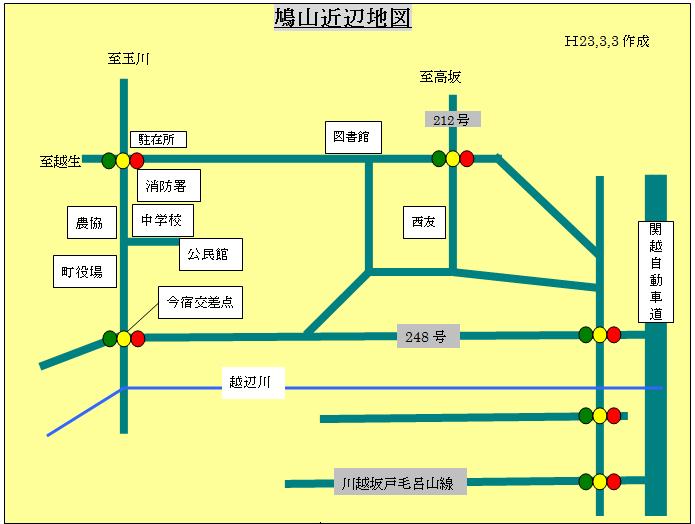 | 2011年3月3日の作品 コッシーさんの地図“鳩山近辺” (使用ソフト:ワード) |
