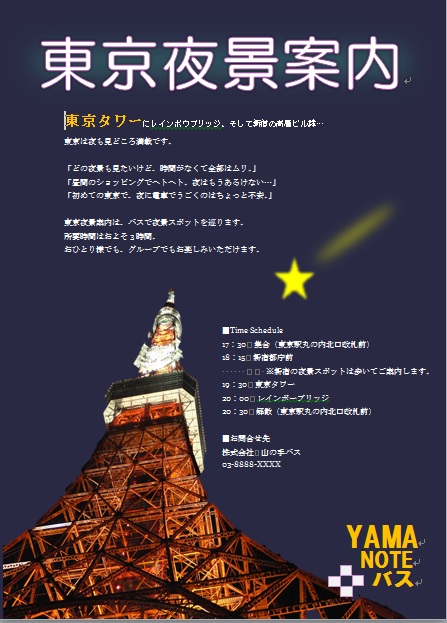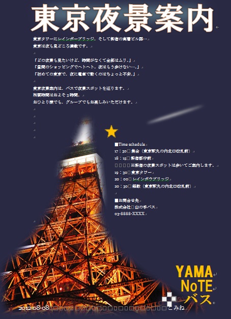 | 2012年10月2日の作品(メールで送られてきた) まこさんの“東京夜景案内” (使用ソフト:ワード) 完璧ですね〜 |
