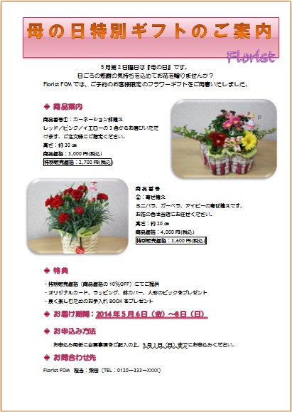 2013年12月18日の作品 はるちゃんの“母の日ギフト” (使用ソフト:ワード) |