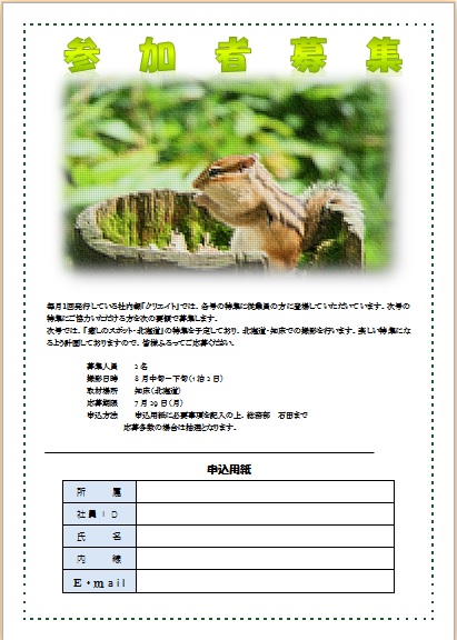 | 2013年12月18日の作品 まさこさんの“参加者募集” (使用ソフト:ワード) |