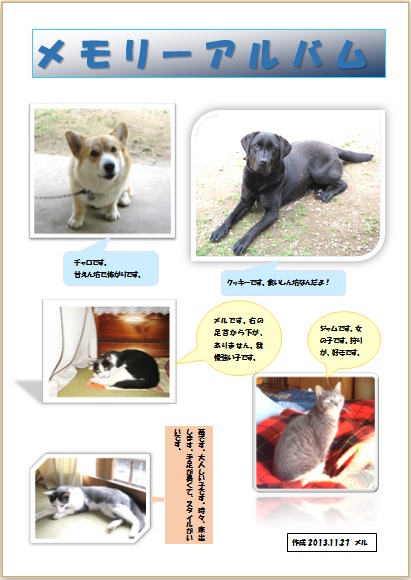 2013年12月2日の作品 メールで届きました めるちゃんの“愛犬のメモリーアルバム” (使用ソフト:ワード) |