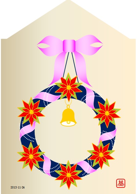 | 2013年11月24日の作品 メールで届きました もっちゃんの“クリスマスリース”(使用ソフト:ワード) |