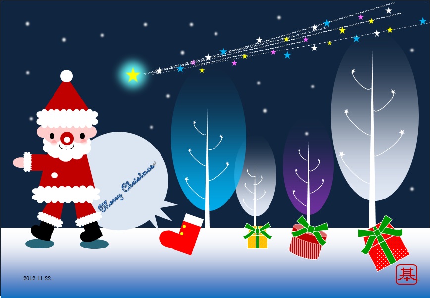 2013年12月5日の作品 メールで届きました まさこさんの“クリスマス会のお知らせ” (使用ソフト:ワード) |