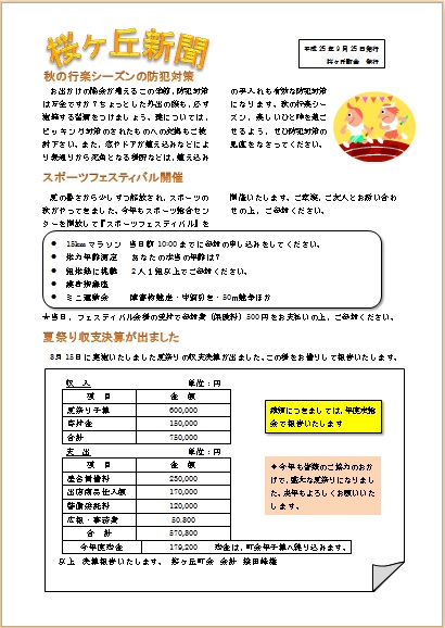 | 2013年11月29日の作品 メールで届きました にゃんこさんの“桜ヶ丘新聞” (使用ソフト:ワード) |