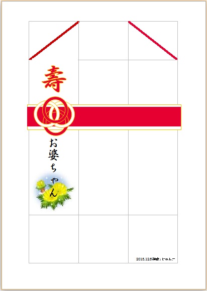 | 2013年12月2日の作品 メールで届きました めるちゃんの“正月用箸袋” (使用ソフト:ワード) |