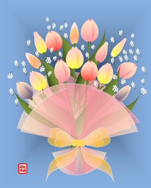 | 2013年3月22日の作品 メールで送られてきました(^_^) まこさんの“チューリップ-2”(使用ソフト:ワード2010) まこさんのこだわりの作品です。 まるで結婚式の花嫁さんのブーケのような花束ですね〜(^_^) |