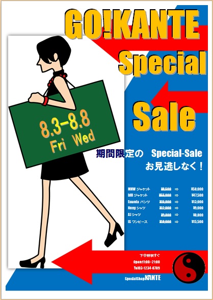 | 2013年3月13日の作品 めるちゃんの“スペシャルセール”(使用ソフト:ワード2007) 難しい操作をクリアーして、きれいに仕上げましたね〜(^_^) |