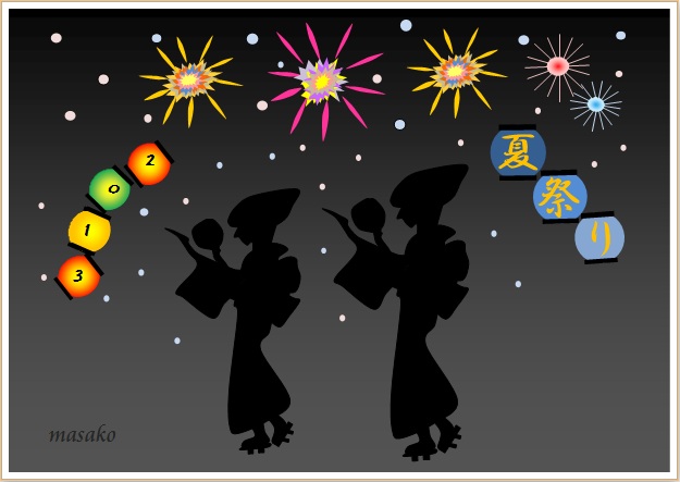 | 2013年7月29日の作品 メールで送られてきました(^_^) “まこさんの夏祭り” (使用ソフト:ワード2010) 過去の作品をリニューアルした25年バージョンです。 踊る人を影絵のように描くなんて魅惑的ですね(^_^) |
