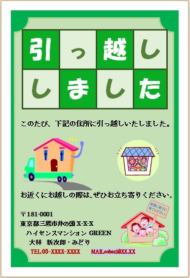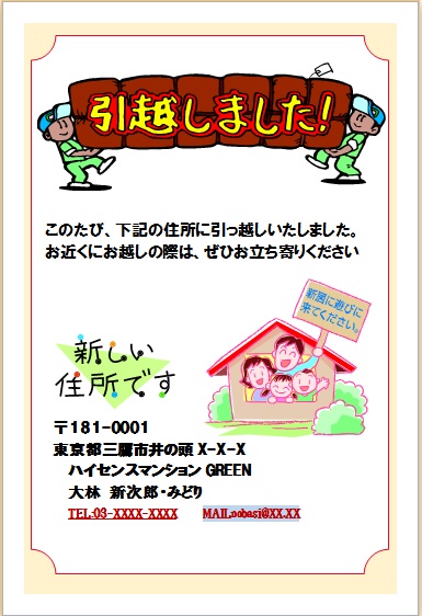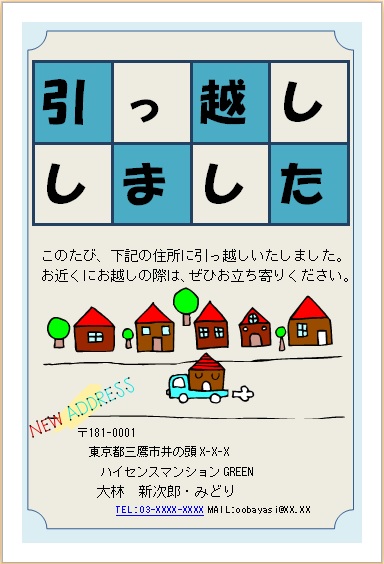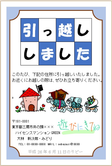 | 2014年6月11日 まよちゃんの“引越しハガキ” (使用ソフト:ワード) |