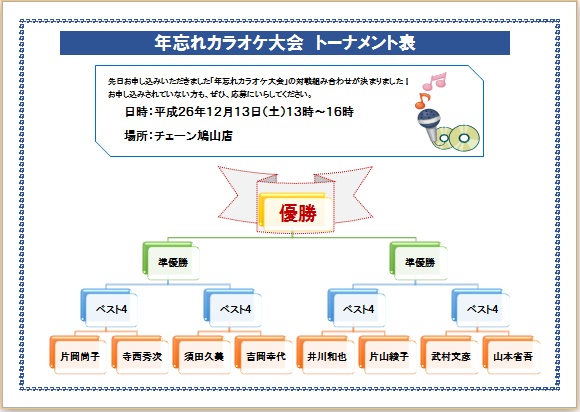 2014年6月20日 メールで届きました(^_^) にゃんこさんの“カラオケトーナメント表” (使用ソフト:ワード) |