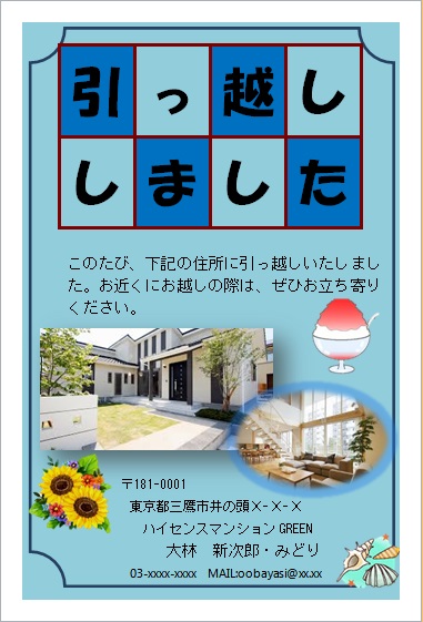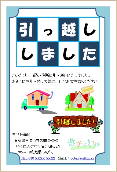 2014年8月20日 ゆりちゃんの“引っ越しハガキ-2” (使用ソフト:ワード) |