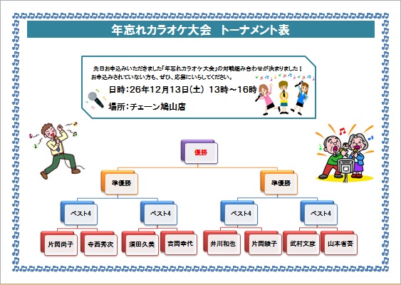 | 2014年8月20日 ゆりちゃんの“カラオケトーナメント表” (使用ソフト:ワード) |