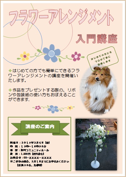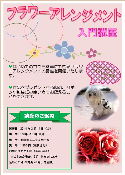 2015年2月4日の作品 はっちゃんの“フラワーアレンジメント” (使用ソフト:ワード) |