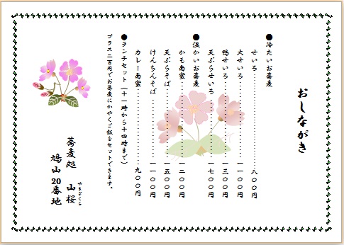 | 2015年2月4日の作品 メールで届きました(^_^) まこさんの“おしながき” (使用ソフト:ワード) |