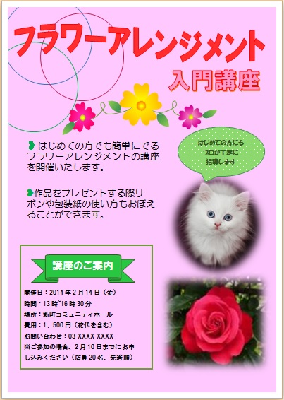 2015年2月6日の作品 にゃんこさんの “フラワーアレンジメント” (使用ソフト:ワード) |