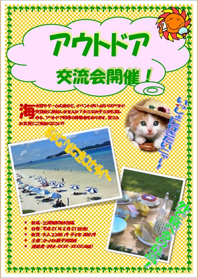 | 2015年3月4日の作品 メールで届きました(^_^) まこさんの“バザー開催” (使用ソフト:ワード) |