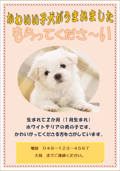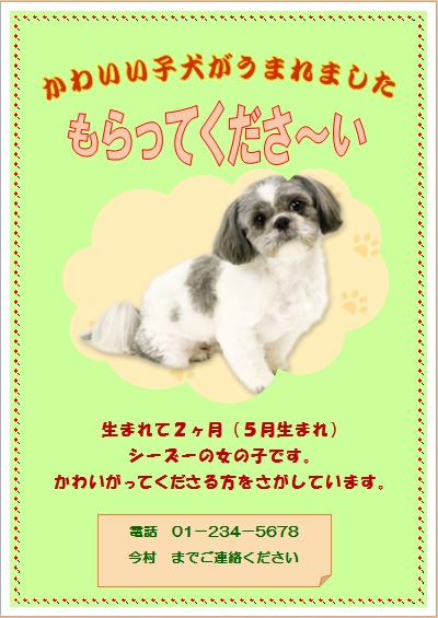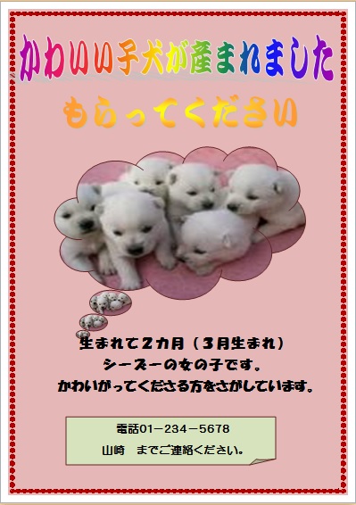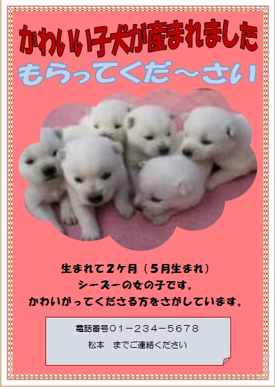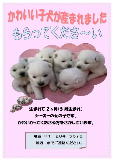 | 2015年3月20日の作品 みっちゃんの“子犬もらって” (使用ソフト:ワード) |
