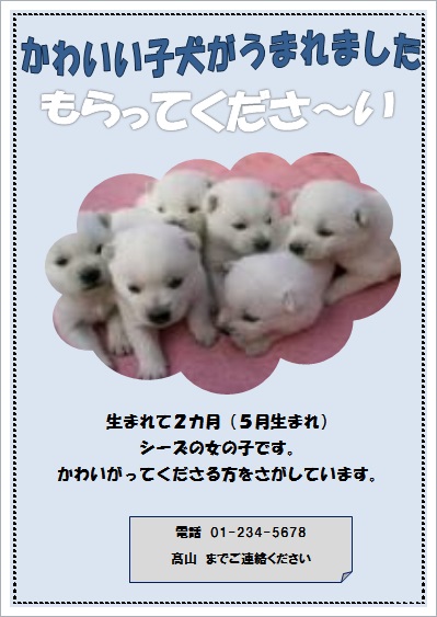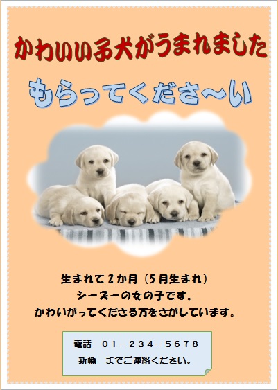 2015年3月13日の作品 ほそちゃんの“子犬もらって〜” (使用ソフト:ワード) |