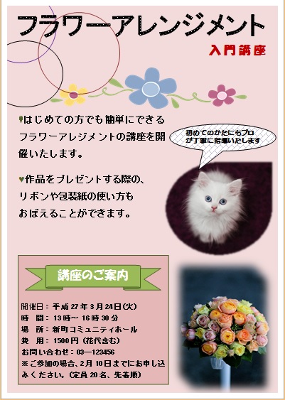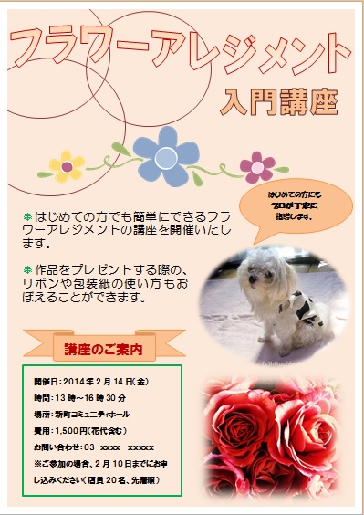 | 2015年3月25日の作品 まりちゃんの“フラワーアレンジメント” (使用ソフト:ワード) |