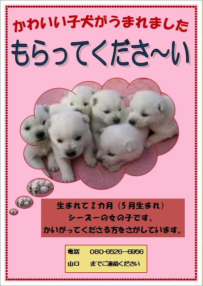 2015年3月27日の作品 やまちゃんの“子犬もらって” (使用ソフト:ワード) |