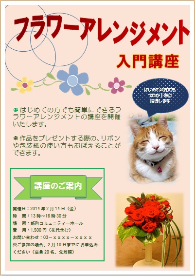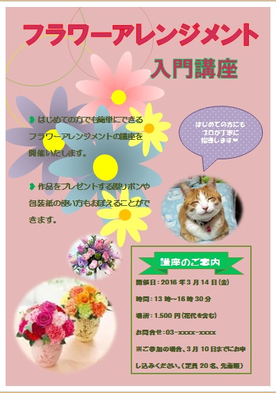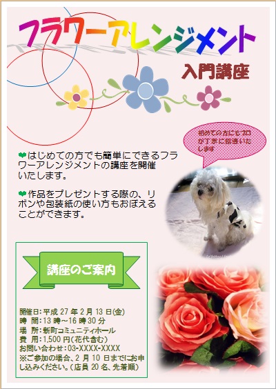 2015年2月13日の作品 ほそちゃんの“フラワーアレンジメント” (使用ソフト:ワード) |