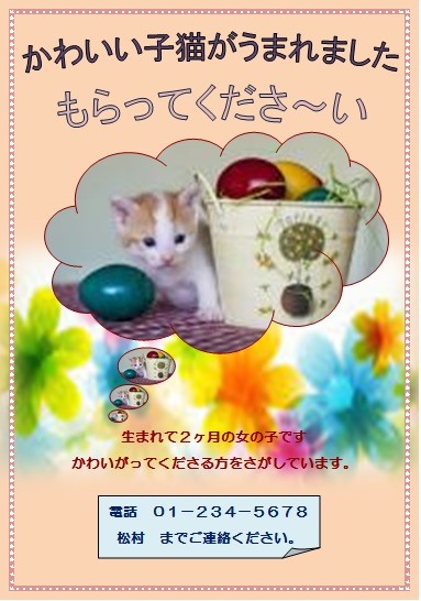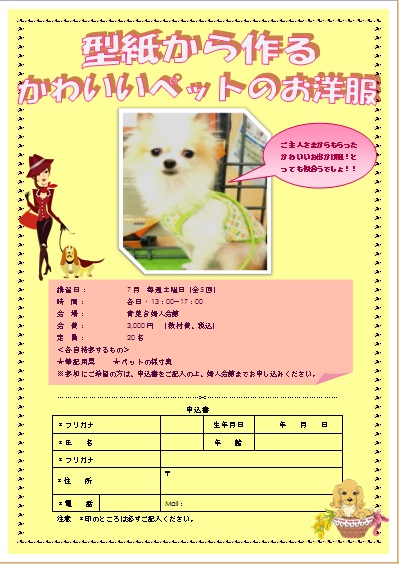 | 2015年4月10日の作品 ほそちゃんの“ペットの洋服” (使用ソフト:ワード) |