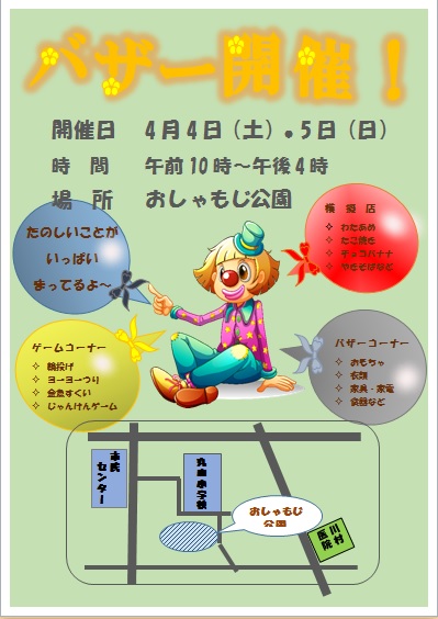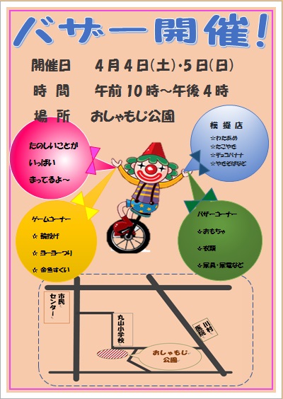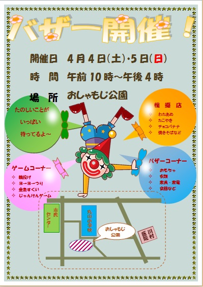 2015年3月4日の作品 メールで届きました(^_^) まこさんの“バザー開催” (使用ソフト:ワード) |