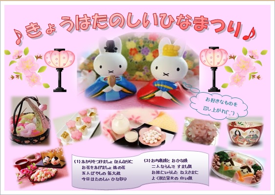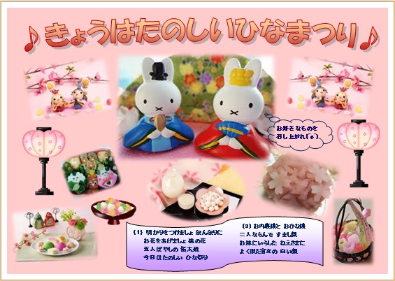 | 楽しい春は すぐそこに (^_^) お雛様の季節が近づいてきましたね |