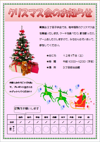 2017年1月6日の作品 せっちゃんの“クリスマス会のお知らせ” |