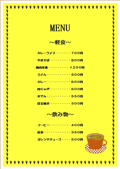 | 2018年10月5日の作品 たかちゃんの“メニュー” (使用ソフト:ワード) |